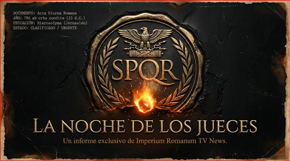 ¡Salud, ciudadanos de Roma! Os habla Lucius Valerius. La noche se vuelve más gélida a medida que nos acercamos al alba, esa hora en la que los hombres revelan su verdadera naturaleza. Valeria Julia, desafiando todo sentido de la prudencia, ha logrado penetrar en el recinto más vigilado de la ciudad: el palacio del Sumo Sacerdote Caifás. Bajo un manto oscuro y confundida entre la multitud de siervos y guardias que se calientan junto a las brasas, su pluma no descansa.»