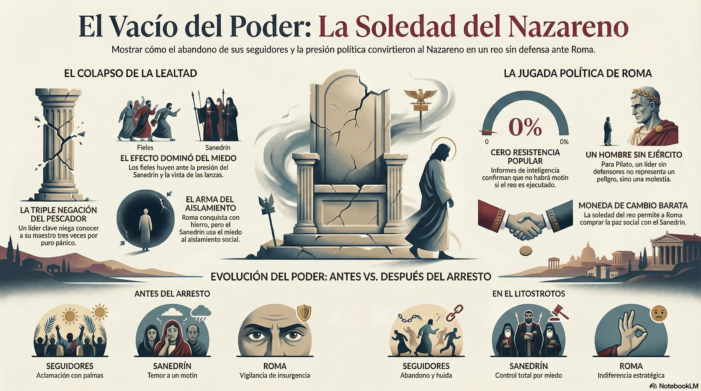 - La Paradoja: Irónicamente, esta soledad es lo que más condena al Nazareno. Para Roma, un hombre sin ejército no es un peligro, pero un hombre sin defensores es una moneda de cambio barata para comprar la paz social.