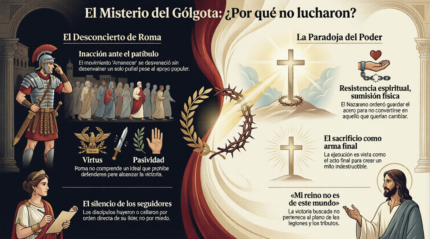 Como romana, entiendo el sacrificio por la patria, pero el sacrificio por un ideal que prohíbe defenderse es algo que desafía toda la virtus de nuestros antepasados. Si este joven tiene razón, el Sanedrín y Pilato están cayendo en una trampa monumental: están matando a un hombre para dar vida a un mito indestructible.