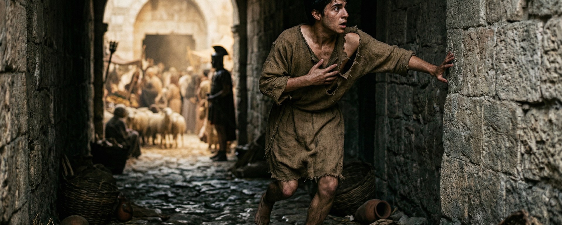 Lo encontré. El joven que lideraba los cánticos no estaba gritando, ni llorando, ni escondido. Estaba sentado junto a un muro, observando cómo un grupo de soldados romanos pasaba a paso de marcha. Su túnica estaba sucia y sus manos, antes alzadas en oración, descansaban inertes sobre sus rodillas.