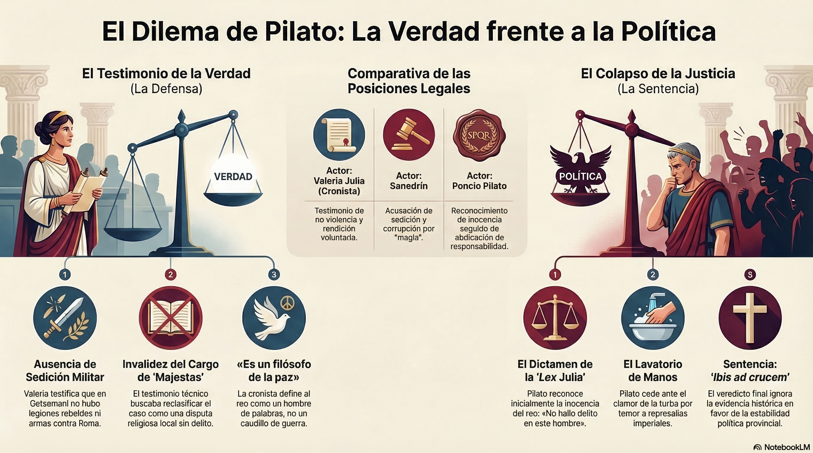 - Desmontando la Traición: Con este acto, Valeria intenta invalidar el cargo de Majestas (alta traición). Si no hubo rebelión militar, el caso vuelve a ser una disputa religiosa local, algo que Pilato podría descartar con un simple gesto de manos.