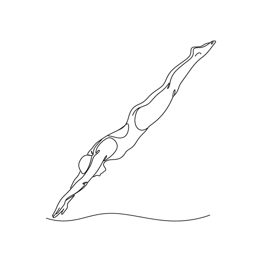 >minimalist line art of a swimmer diving into the water, clean white background, single continuous black line, elegant and simple --ar 1:1