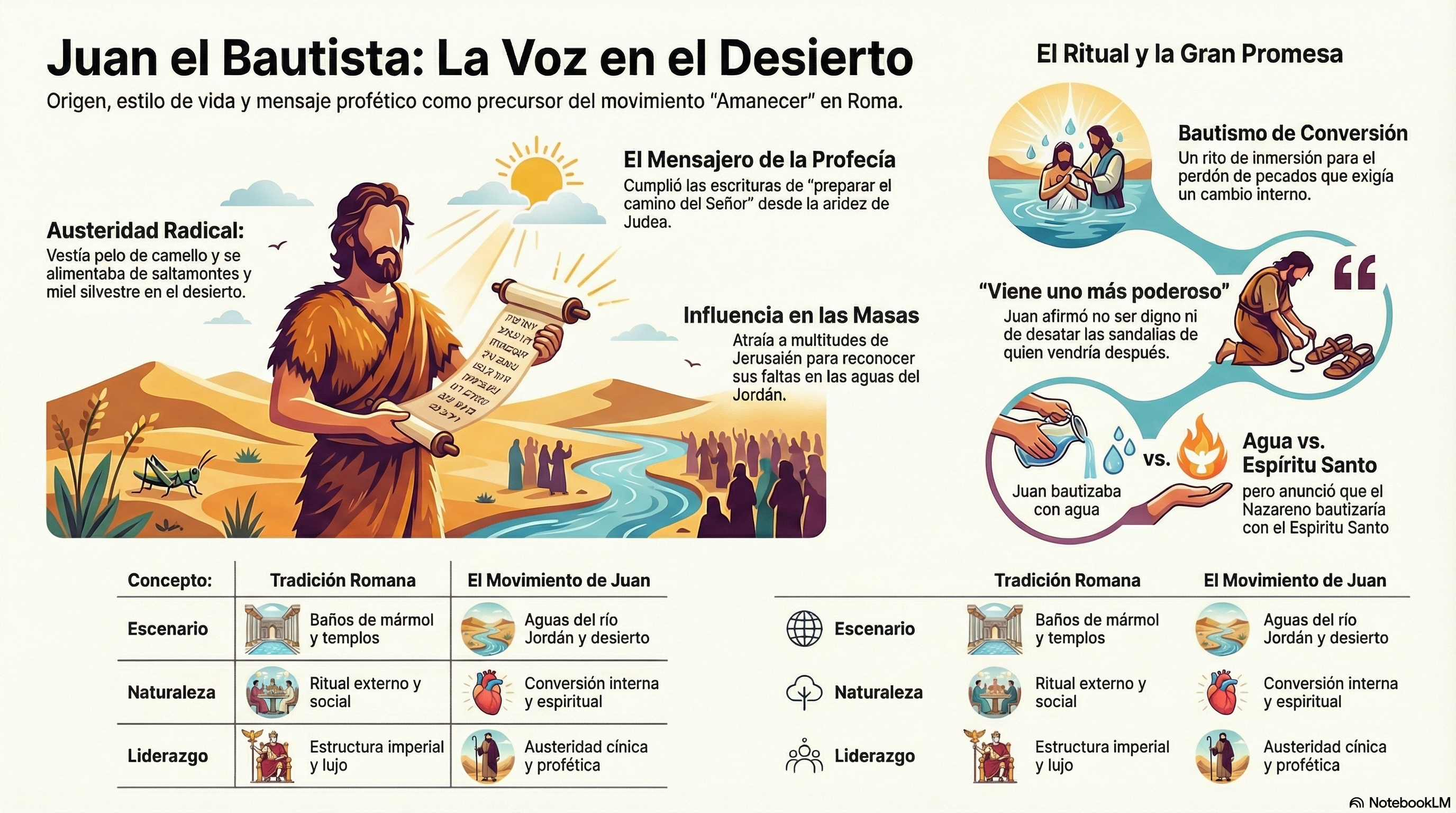 - La raíz en el desierto: Los dirigentes me han dejado claro que su fe no es un brote espontáneo ni un cúmulo de rumores de puerto. Todo se remonta a una figura austera y formidable: Juan el Bautista. Él fue el «mensajero» que, cumpliendo las antiguas profecías, clamó en el desierto para preparar el camino y enderezar los senderos.