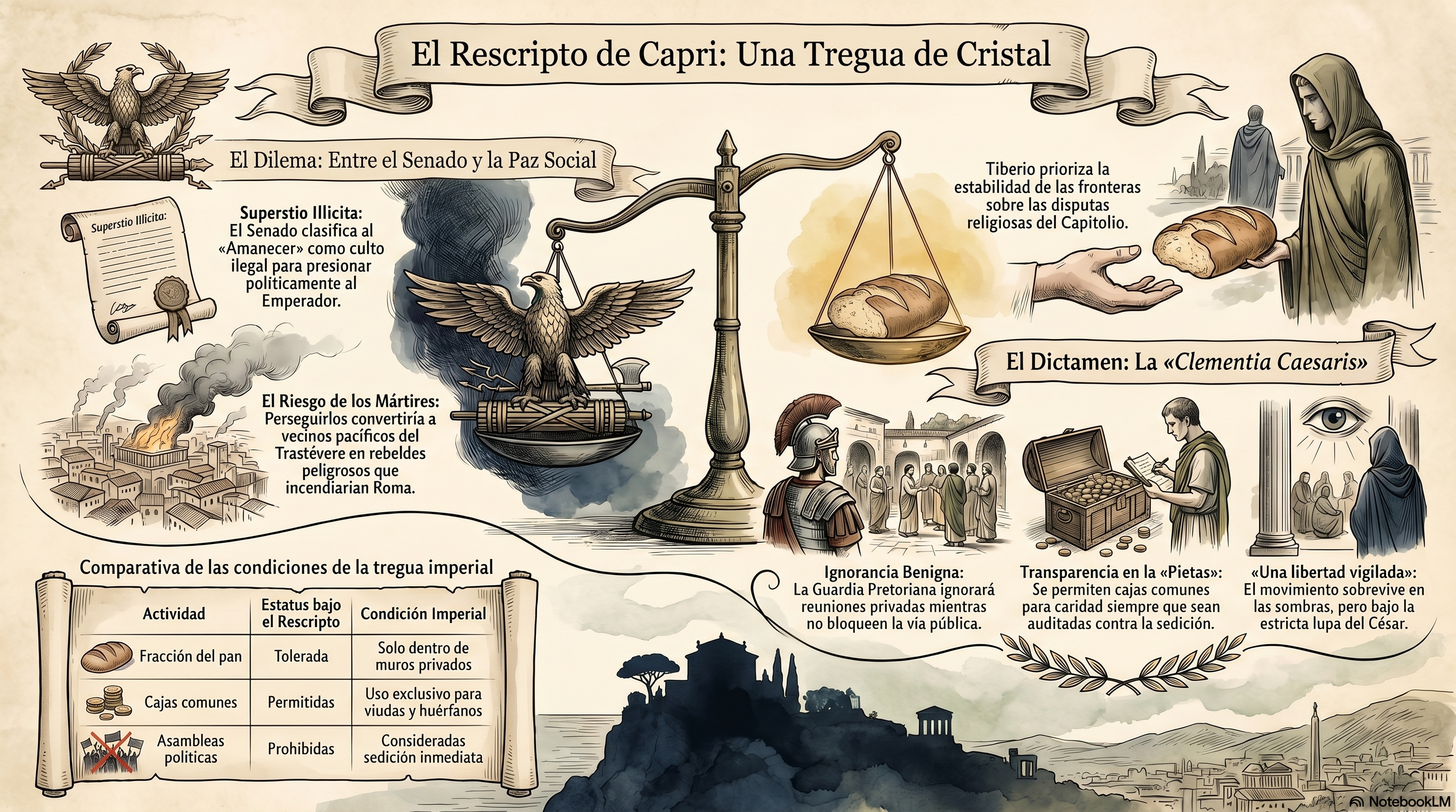 - La Postura: El Emperador mantiene la etiqueta de superstio illicita propuesta por los Padres Conscriptos para no fracturar la relación con el Capitolio.