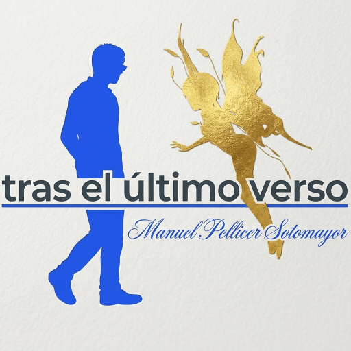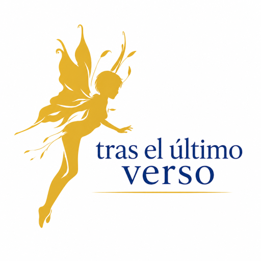 - El texto principal «tras el último verso» en una sans-serif moderna, y el nombre del autor en una caligrafía clásica azul, subrayan esta tensión entre lo moderno/racional y lo clásico/poético.