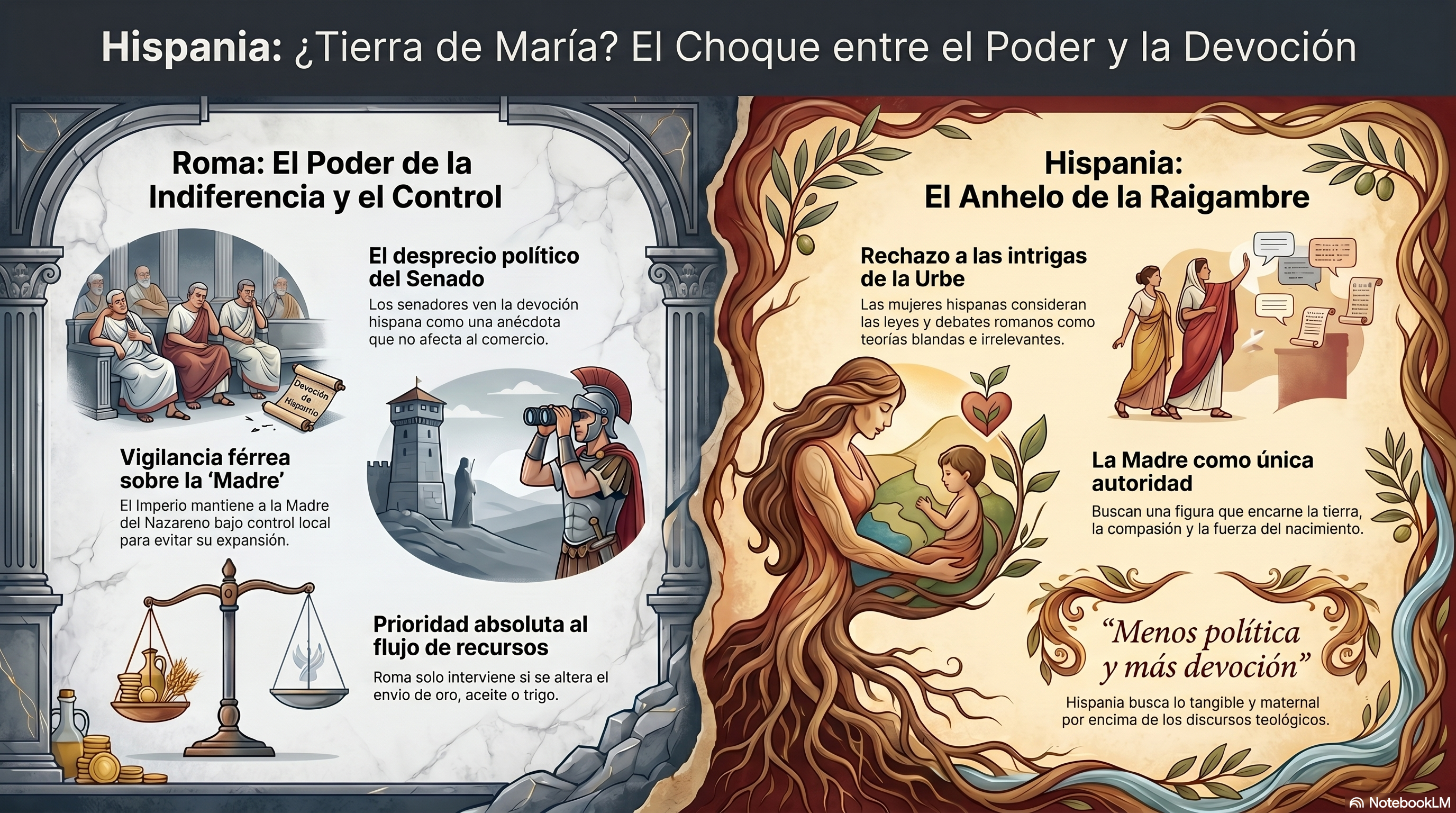 • El Riesgo del Silencio: Lo que el Senado no entiende es que, a veces, la espera y el silencio alimentan más la leyenda que la propia presencia. Si la Madre nunca llega a Hispania porque Roma la mantiene «controlada», el mito de su figura solo crecerá entre las mujeres del Tagus.